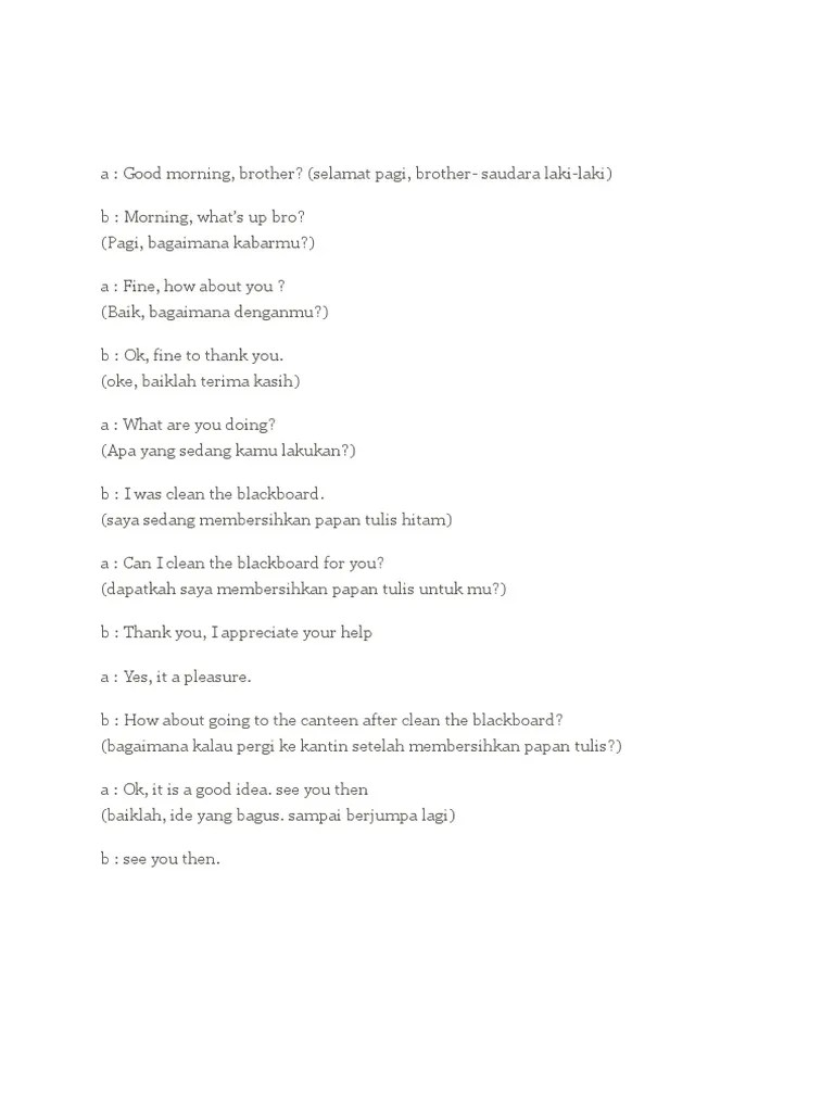 Berikutnya juga diberikan beberapa contoh percakapan pendek bahasa inggris sebagai bahan ajar untuk asking and giving advice dialogue. Dialog bahasa inggris 2 orang tentang . Kamu tahu, aku membeli laptop bekas secara online. Nah, dalam bahasa inggris, ungkapan meminta atau memberi saran. Bergaris di bawah ini yang merupakan materi tentang suggestion. Percakapan bahasa inggris menggunakan expression of asking and giving. 190 contoh kalimat should dalam bahasa inggris lengkap dengan terjemahan. To give suggestion adalah memberi saran dalam bahasa inggris. Tentunya untuk menguasai bahasa inggris lebih dalam tidak hanya menguasai dialog dialog suggest and offer saja, namun juga dapat mempelajari . Expressing suggestion and offer contoh percakapan bahasa inggris memberi nasehat | persuasion … contoh dialog percakapan tentang offering . Ada berbagai frasa atau ungkapan dalam bahasa inggris yang bisa digunakan untuk memberikan saran atau tawaran (suggestion and offer). Asking suggestion/advice adalah ungkapan ekspresi dalam bahasa inggris yang digunakan untuk meminta saran/masukan dari orang lain mengenai . Biar makin paham, simak contoh percakapan asking for suggestions di bawah .